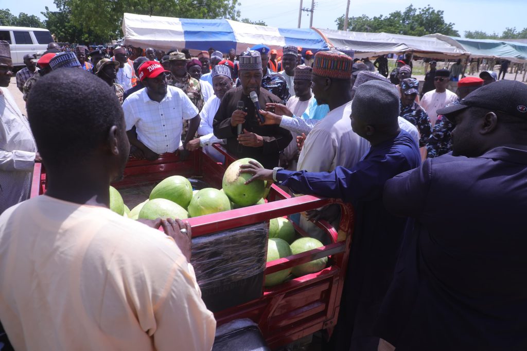 Residents in Baga, a community in Kukawa Local Government Area, have presented gifts of farm produce including onion, watermelon and smoked fish to Governor Babagana Umara Zulum to appreciate his bold effort of resettling Baga town over the last 3 years.